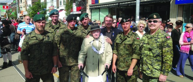 fot.: Ted Opitz z ojcem weteranem na ulicy Roncesvalles w otoczeniu polskich żołnierzy