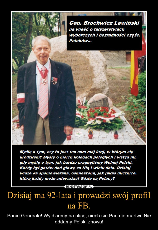 – generał brygady Janusz Brochwicz-Lewiński, „Gryf”, żołnierz Batalionu „Parasol’ i dowódca obrony słynnego pałacyku Michla – (wpis na Facebooku po wyborach samorządowych w Polsce)