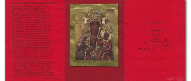 Sygnowana „Róża wiatrów”, sama będąc białym krukiem, kryła jednak prawdziwy skarb: ręcznie wyklejoną kartkę świąteczną z wizerunkiem Matki Boskiej Częstochowskiej, z wydrukowanym na czerwonym papierze wierszem Lechonia „Matka Boska Częstochowska” i życzeniami wigilijnymi, podpisanymi przez autora wiersza. Dedykacja była zapewne przeznaczona dla Mieczysława Zagajskiego (nazwanego „drogim Panem”), a kartka wydrukowana przez „Polish Women’s Relief Committee” nosi odręcznie przez Lechonia napisaną datę 24/XII 1942. Dokładnie siedemdziesiąt lat temu!
