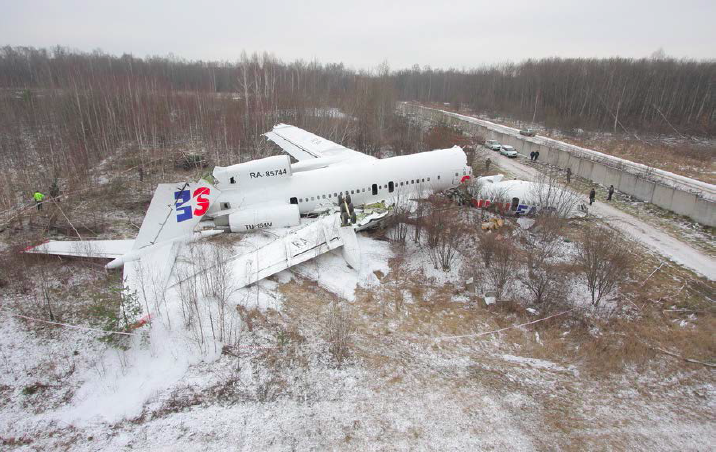 Rys. 1. Katastrofa Tu-154M w Moskwie w dniu 4.12.2010. Katastrofa typu 1A – samolot uderzył w ziemię i nie było eksplozji.
