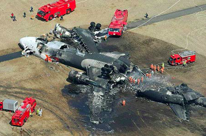 Analiza katastrof lotniczych zarejestrowanych w bazach danych, jakie są prowadzone przez wszystkie państwa członkowskie należące do ICAO pozwala na łatwą identyfikację podstawowej cechy zniszczenia w katastrofie typu 1A, tj. takiej, przy której samolot jako całość upada na ziemię i upadkowi nie towarzyszy eksplozja. W historii zdarzyły się tysiące takich katastrof. Zajmiemy się tylko katastrofami dużych samolotów pasażerskich. Przykłady takich katastrof z kilku ostatnich lat przedstawiają Rys. 1 – Rys. 4. W katastrofie takiej, jeśli następuje pękniecie kadłuba, zawsze jest ono prostopadłe do osi samolotu. Długi kadłub może zostać podzielony nawet na kilka części, ale zawsze przez pęknięcia prostopadłe do osi, a nigdy wzdłuż osi. Jeśli mimo pęknięć prostopadłych do osi samolotu nastąpiło pęknięcie wzdłuż osi – „rozdziawiające” kadłub – świadczy to o tym, że jest to katastrofa typu 1B, tj., że po upadku nastąpiła wewnętrzna eksplozja. Przykładem jest tu katastrofa samolotu McDonnell Douglas MD-11 na lotnisku Narita w Tokio w dniu 23.03.2009 (por. Rys. 5). Wiozący cargo z Chin samolot podchodził do lądowania podczas silnego wiatru. Samolot uderzył w płytę lotniska, odbił się, a następnie obrócił w lewo i upadł na plecy. Nastąpił wybuch i pożar, w którym zginęli obaj piloci.