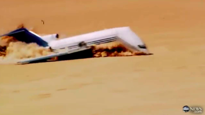 Jak wygląda przebieg katastrofy typu 1A najlepiej ilustruje eksperyment przeprowadzony w dniu 27.04.2012 na pustyni w Meksyku, który został sfinansowany przez kanał telewizyjny Discovery Chanell. Sprawny samolot pasażerski Boeing 727-800 wyposażono w liczne czujniki i kamery telewizyjne do rejestracji eksperymentu. Po wystartowaniu z lotniska w Mexicali piloci nakierowali samolot na pustynię, uruchomili system automatycznego lądowania i wyskoczyli z samolotu. Samolot z wypuszczonym podwoziem wykonał „lądowanie w trudnym terenie”, które zostało szczegółowo zarejestrowane. Na skutek oporów podwozia nastąpiło pękniecie kadłuba prostopadłe do osi (por. Rys. 6), a następnie całkowite oderwanie przedniej części.